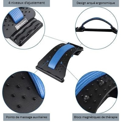 Grâce à son système d'étirement progressif, la civière dorsale réduit la pression sur les disques vertébraux, ce qui apaise immédiatement les nerfs comprimés. En seulement quelques minutes, vous ressentez un soulagement naturel, sans médicament et sans séances coûteuses chez le kinésithérapeute. Idéale pour les douleurs liées au stress, à la sédentarité, la lombalgie, la hernie discale, la hernie cervicale, la hernie thoracique, la scoliose, la sciatique, les tensions musculaires chroniques, les raideurs et perte de mobilité, etc.